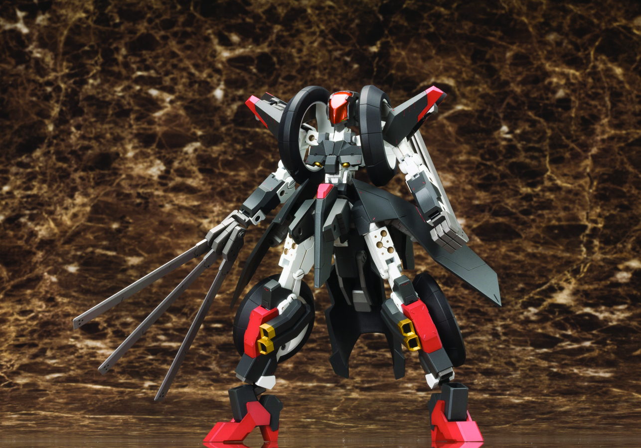 Kotobukiya presents the latest entry in their FRAME ARMS series of customizable plastic model kits: the RF-12 WILBER-NINE. Standing up to 16 cm (6.3 in) tall cully assembled, the Wilber-Nine stands out in its bold grey and red color scheme with white highlights. Featuring multiple points of articulation, the Wilber-Nine can be configured in either attack robot or motorcycle mode. Like all Frame Arms, parts and weapons are interchangeable with other Frame Arms model kits, and is compatible with Kotobukiya's Modeling Support Goods (MSG).