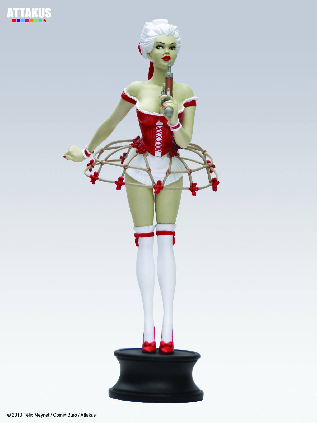 Sketchbook Meynet's covers! Come on, Lady Justine isn't a libertine, just a mischevious epicure. In the middle of the 18th-century, she tastes her own revolution and ignore the accepted morals of her time. A discreet beauty spot, an alluring corset, cheeky eyes - Lady Justine enlightens the Age of Enlightenment! Live and let live, enjoy and let others enjoy, morality is no more than that! The resin statue stands 10 7/8" tall.