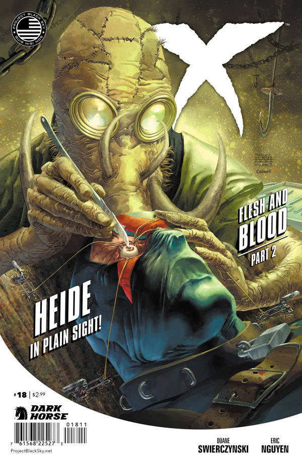 X has been abducted by the Skin Traders! Their gruesome, animal-faced leader is determined to get a slice of X's famously resilient flesh. While Leigh and Ruidoso mobilize to track down X's whereabouts, X fights tooth and nail to keep a deranged doctor from getting under his skin!