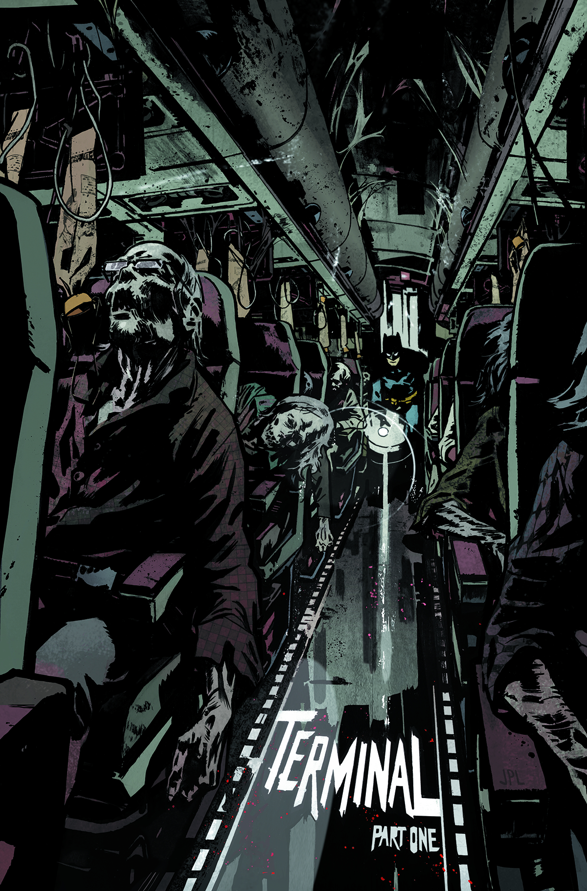 In the first chapter of a two-part tale by the guest team of writer Ben Percy and artist John Paul Leon, a civilian appearance at Gotham Airport turns into a horror show for Batman when a plane full of dead passengers arrives on the runway! What happened - and what can Bruce Wayne do about it?