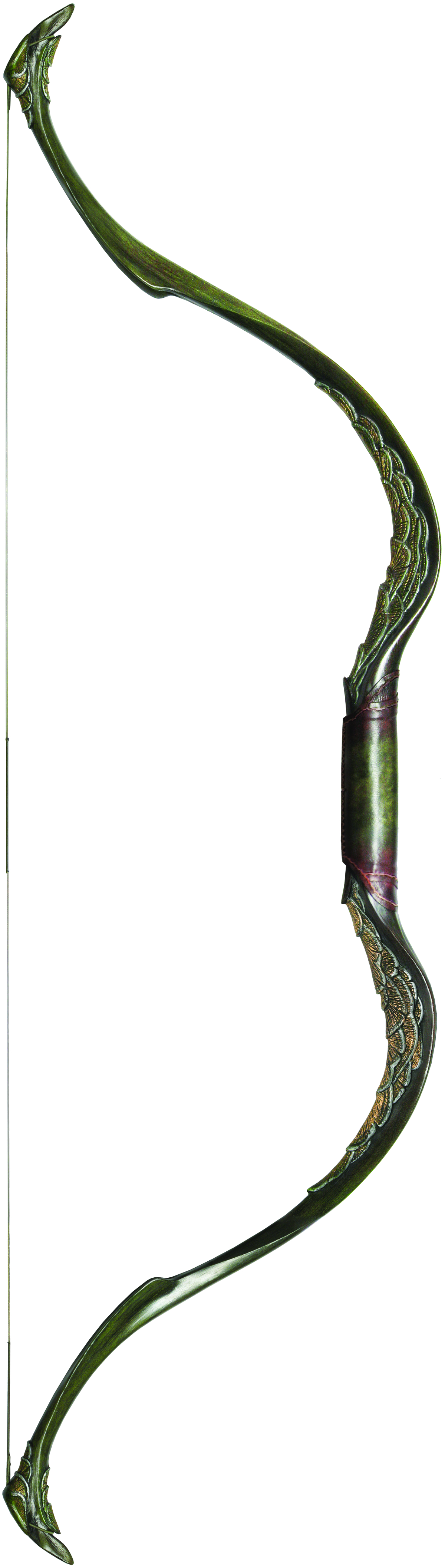 Tauriel is a Silvan Elf and daughter of Mirkwood. A favorite of King Thranduil and Captain of his Woodland Guard, she is an expert fighter and extremely fast and agile in battle. Her signature weapons are twin daggers and a bow. The bow is a deadly accurate traditional recurve design used by the Woodland Guard, ornately carved with leaf motifs and hoof-shaped string nocks. United® Cutlery's replica is crafted of steel-reinforced polyresin, with precise detailing and colors to exactly match the movie prop. It is presented with a poly stone wall mount featuring a graphic motif of Tauriel. The bow measures 48" overall, the arrow: 42" overall.
