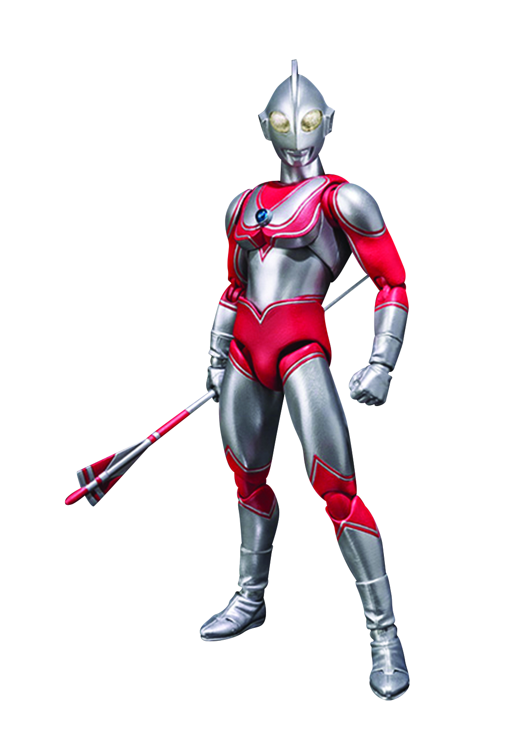 Ultraman Jack, one of the six Ultraman Brothers. He comes with a special interchangeable hand piece wearing the Ultra Bracelet, his ever transforming and multi-purpose weapon. With superior articulation, it is possible to recreate the action-packed scenes from the series! Ultraman Jack uses a variety of weapons and this set comes with four of them: the Ultra Spark, Ultra Lance, Ultra Cross, and Ultra Defender. Set also includes a Specium Beam, a total of 7 additional interchangeable hand parts, and joint parts for supports. Figure stands 6 1/4" tall.