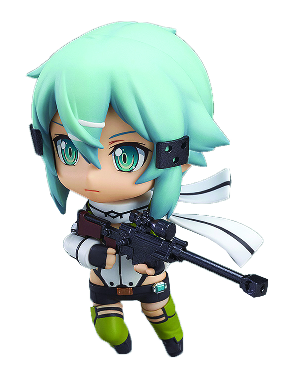 From Good Smile Company. To commemorate the upcoming 'Sword Art Online The Movie - Ordinal Scale' comes a rerelease of one of the best snipers in GGO - Nendoroid Sinon! The GGO player aiming to be the very best! Her arms are specially articulated allowing for all sorts of poses with her beloved rifle, the Hecate II. Sinon even comes with alternate parts that allow you to display her prone in a sniping pose, as well as shooting effect parts! A standard expression showing her cool and collected side, as well as an adorable embarrassed expression, are both included. Be sure to add the cool and cute Sinon to your collection!