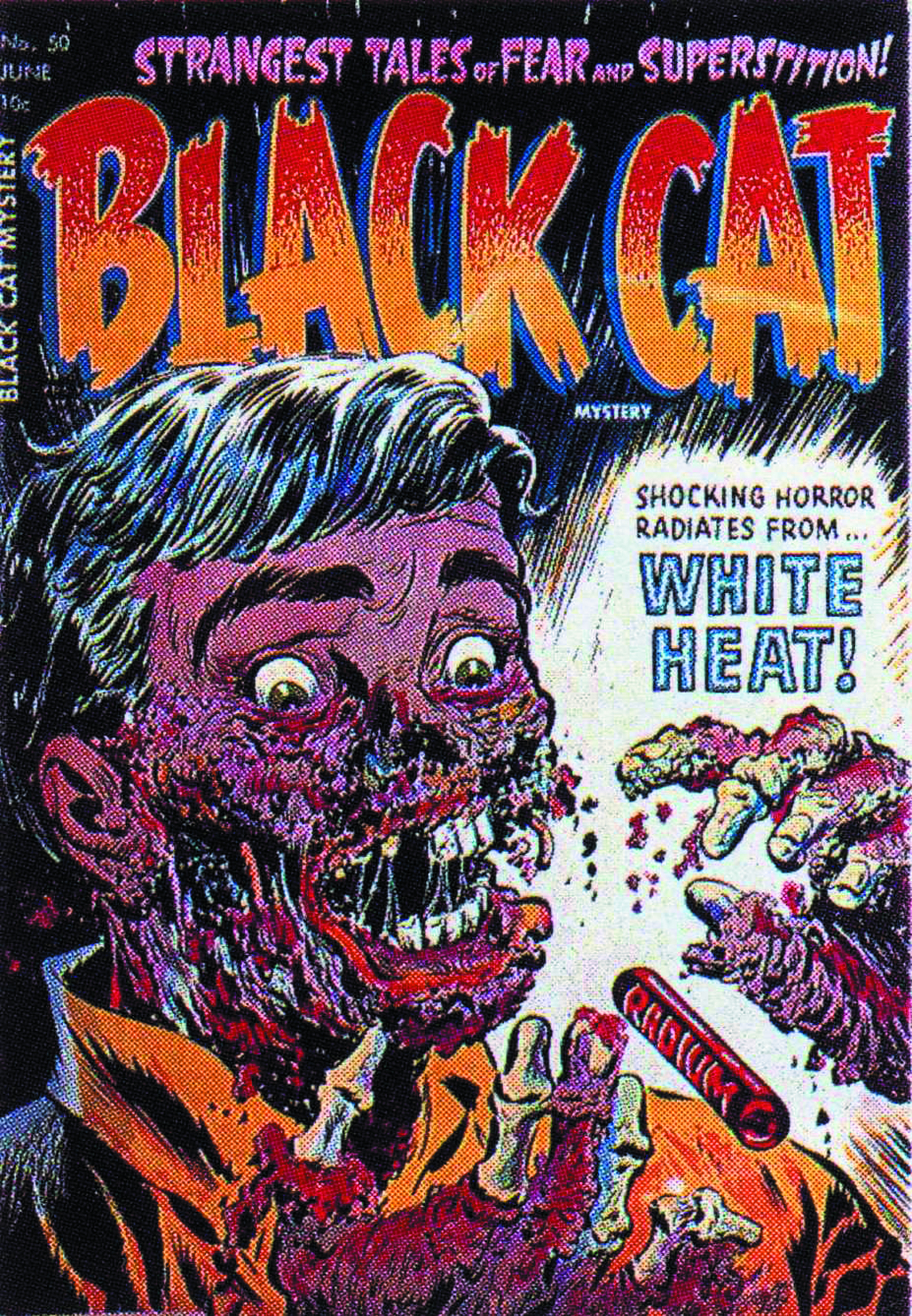 Black Cat Mystery #50 is an exact replica of the 1954 comic including ads and editorial content. This classic cover is one of the most recognizable and desirable horror covers from the 1950s. A true pre-Code masterpiece. Fully restored.