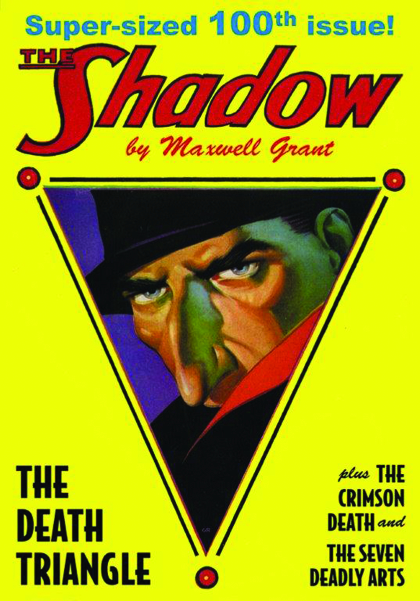 Sanctum Books commemorates its milestone 100th issue with pulp thrillers by all three Maxwell Grants: Walter B. Gibson, Theodore Tinsley and Bruce Elliott! First, The Master of Darkness unmasks the murderous mastermind behind "The Death Triangle." Then, "The Crimson Death" strikes in a dizzy dance of murder that draws even The Shadow into its arms! Finally, a mysterious cult revives an ancient curse through "The Seven Deadly Arts."