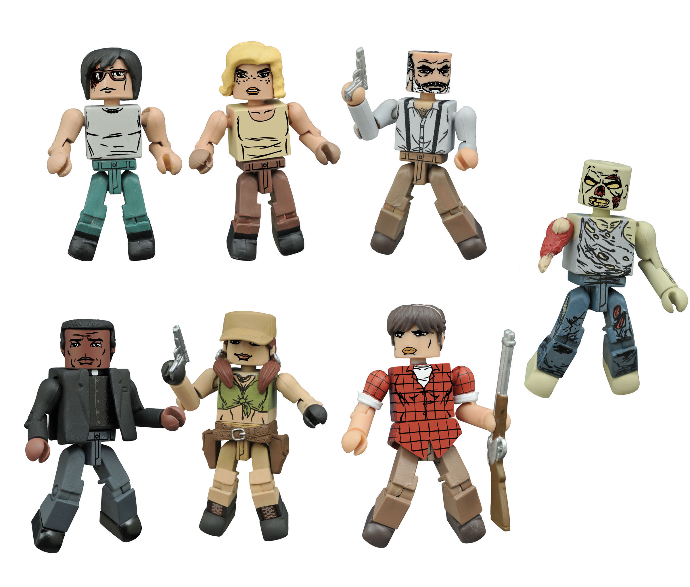 Walking Dead fan! This all-new assortment of comic-based Minimates mini-figures spans the time-jump, featuring "New Beginning"-era Carl with Sophia, "All-Out War"-era Rosita with Father Gabriel, old Hilltop leader Gregory with a Forest Zombie, and a rare, one-per-case two-pack of new Hilltop leader Maggie Greene with a Forest Zombie! Each 2-inch Minimates mini-figure has 10-14 points of articulation and features fully interchangeable parts and accessories. Designed by Art Asylum!