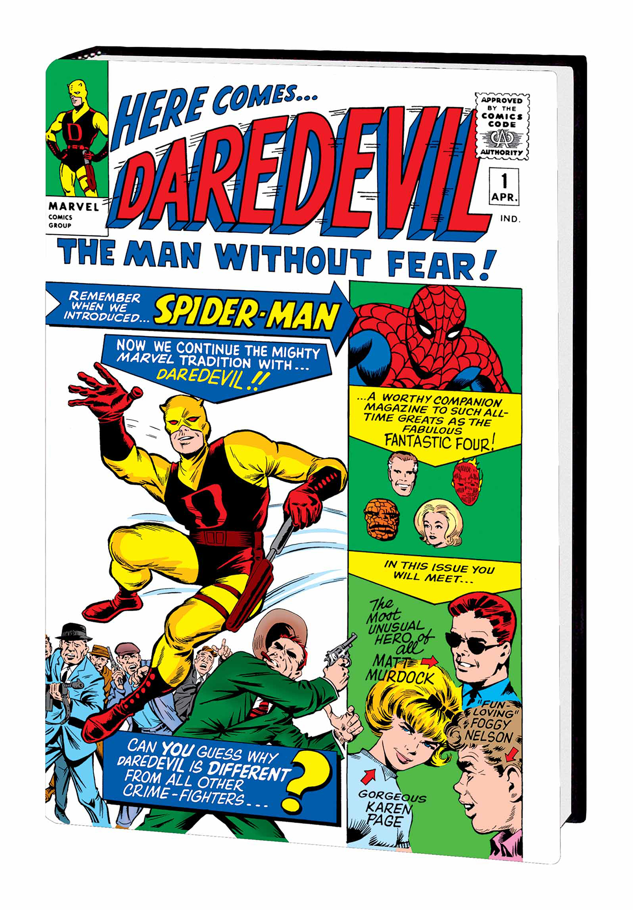 Born to a past-his-prime prizefighter, Matt Murdock's luck always ran a step behind his good intentions. When a daring act to save a man's life blinds young Murdock, he finds that the same accident has enhanced his remaining senses to superhuman levels! He becomes Daredevil, a gritty hero born from murder, but tempered with the desire to protect the downtrodden. In this oversized Omnibus collection featuring every classic story and original letters page, writer Stan Lee and artists Bill Everett, Joe Orlando, Wallace Wood, John Romita Sr. and Gene Colan lay the foundation for Marvel's Man Without Fear! Including the first appearances of core characters Foggy Nelson and Karen Page, and classic villains the Owl, the Purple Man, Stilt-Man, Gladiator and more! Collecting DAREDEVIL (1964) #1-41 and ANNUAL #1, FANTASTIC FOUR (1961) #73 and material from NOT BRAND ECHH #4.