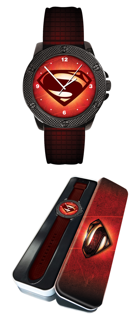 The DC Comics Watch Collection is a new series of limited-edition watches featuring iconic imagery from DC Comics, movies and TV shows. The seventh in the series celebrates the Man of Steel film. Each watch has a quartz movement, alloy case, steel back and black canvas strap, and comes in a collector's tin.