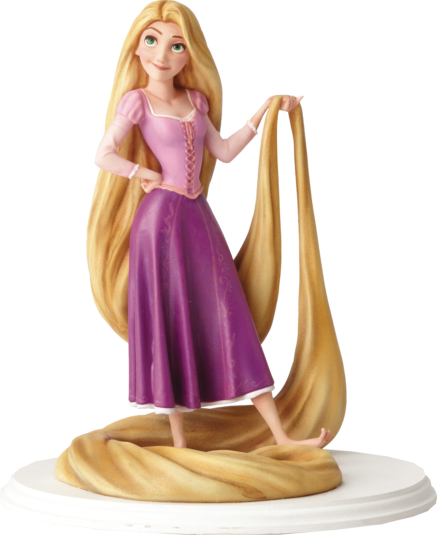 This skillfully crafted, hand-painted limited edition Rapunzel sculpture from Tangled originates from an unpainted animation maquette in the company's collection. Production molds are made from a digital three-dimensional scan. Made of stone resin, this figurine of Rapunzel stands roughly 9 1/2" tall.