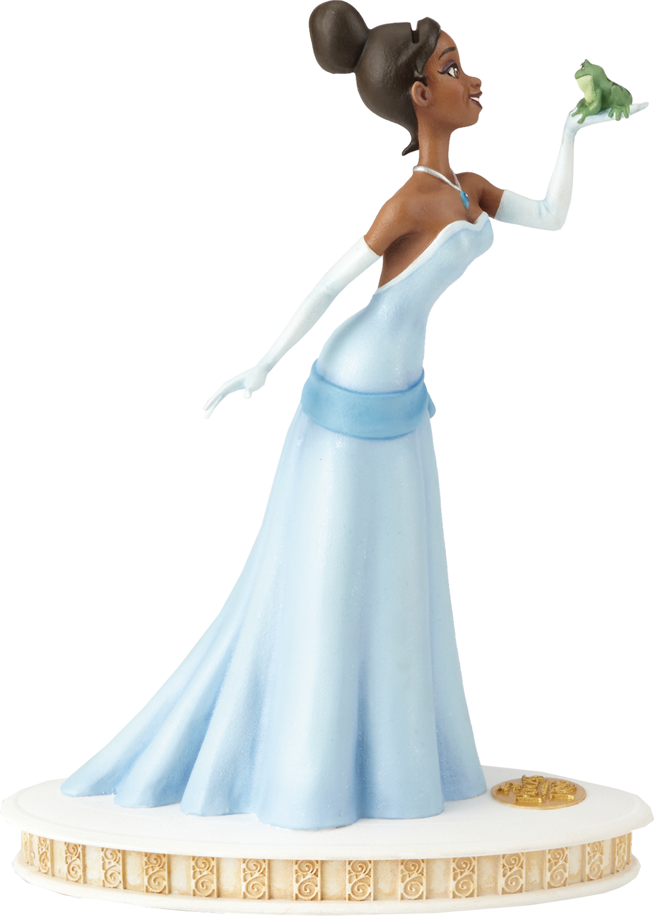 The Princess and the Frog originates from an unpainted animation maquette in the company's collection. Production molds are made from a digital three-dimensional scan. Made of stone resin, this figurine of Tiana stands roughly 10 1/2" tall.