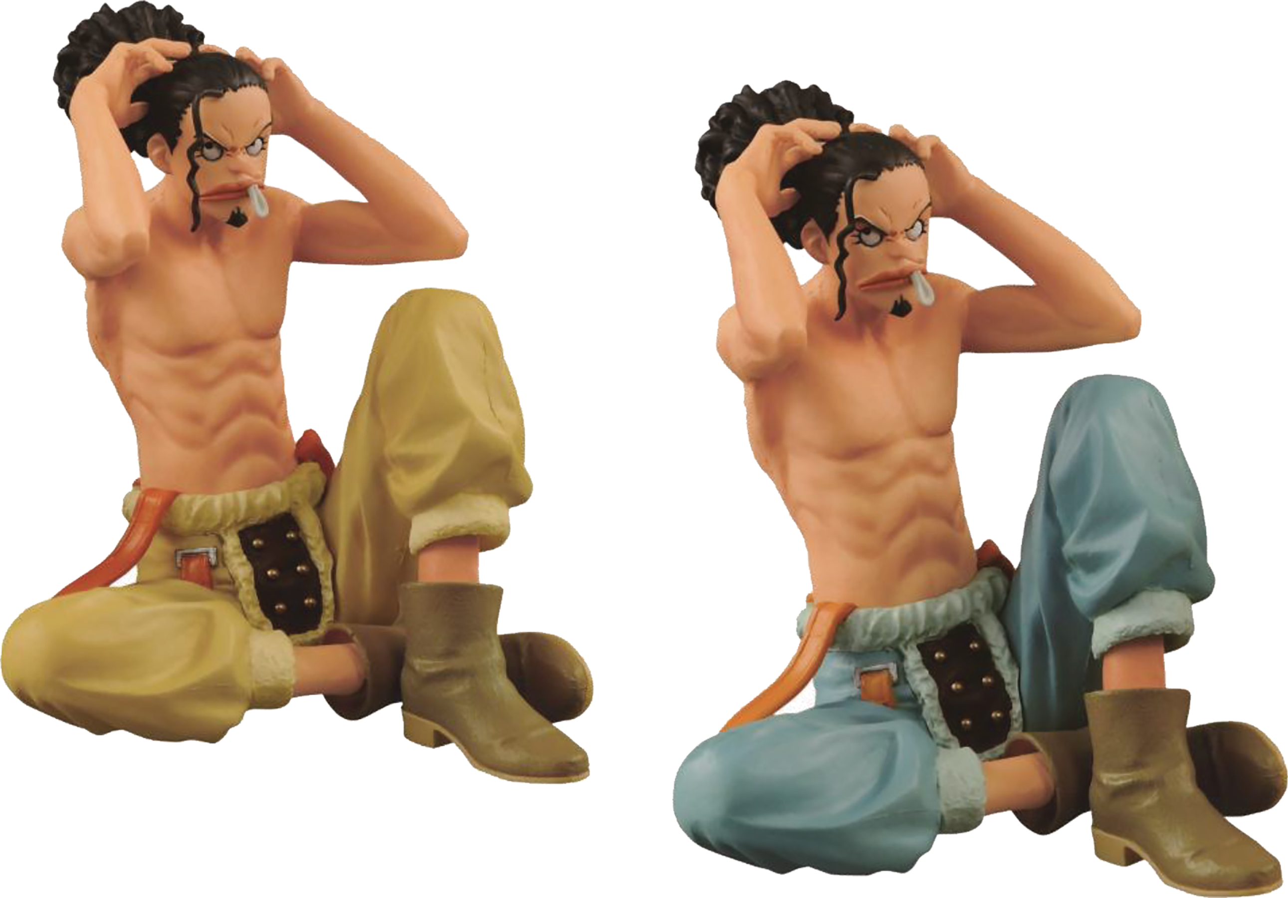 One Piece Body Calendar featuring fan favorite characters in original artwork poses. Featured here are two color variations of Usopp with one in blue-gray pants and the other in his signature yellow-brown animation color. Minor assembly required. Each sold separately.