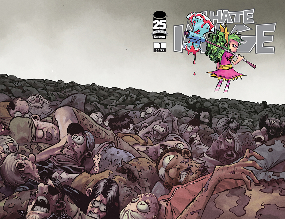 "I HATE IMAGE!" The Free Comic Book Day hit is back, with even more pages! Gertrude has been stuck in Fairyland for decades when she finally hears of a secret passage that may be her way back home. But reaching it is easier said than done, as she crosses the border into Image where she'll have to chop her way through your favorite characters from SAGA, THE WALKING DEAD, SAVAGE DRAGON, SPAWN, DESCENDER, BLACK SCIENCE, SOUTHERN BASTARDS, and many more! This all-new special edition features four additional pages of story as Gert slices and dices her way through even more of your Image favorites, plus a behind the scenes look at Skottie's script, layouts, and black and white artwork all wrapped in a brand-new cover!