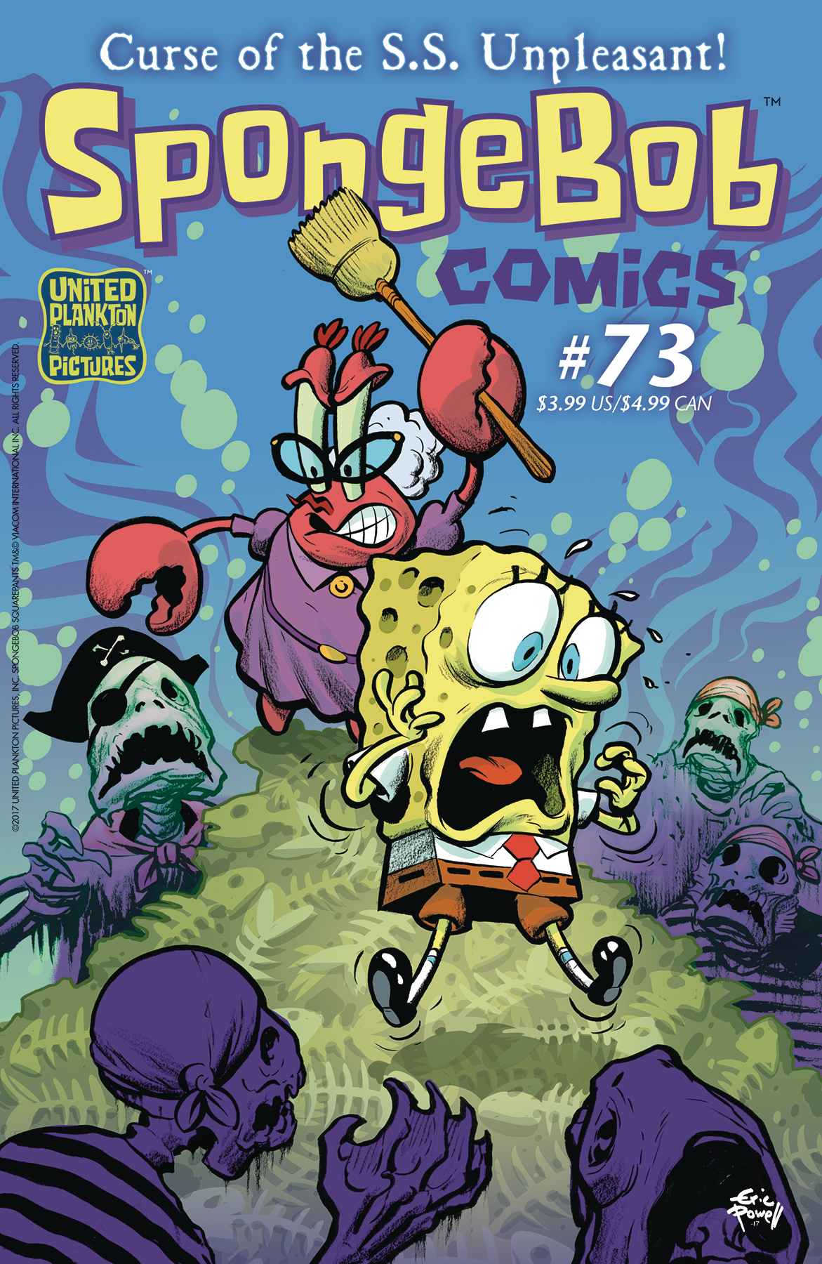 Mavens of the maritime macabre, take note! In this issue, a terrible pirate curse brings SpongeBob and Mr. Krabs face to carapace with an unsavory undead pirate crew! But help is on its way in the form of the ocean's toughest occult detective - Mama Krabs! Watch her work her magic in "The Curse of the S.S. Unpleasant." Also in this issue: Patrick versus Plankton (with art by Hilary Barta), legends of seaside ghosts (with art by Vanessa Davis), and spooky "SpongeFunnies" (with art by James Kochalka!).