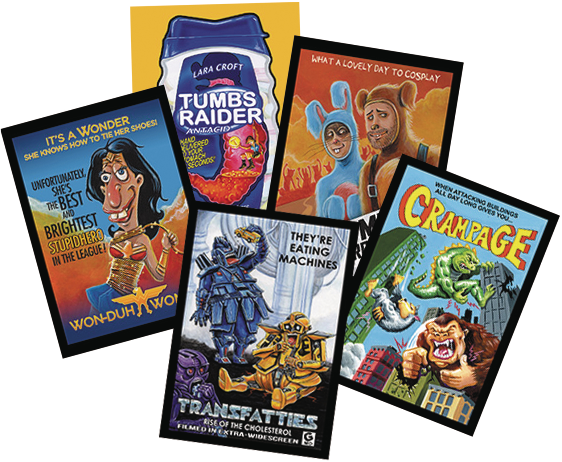 Topps Wacky Packages Go to the Movies. Legendary film franchises and big-budget blockbusters are no match for the parody sticker release. While the 2017 set honored the 50-year anniversary with wide-reaching coverage,