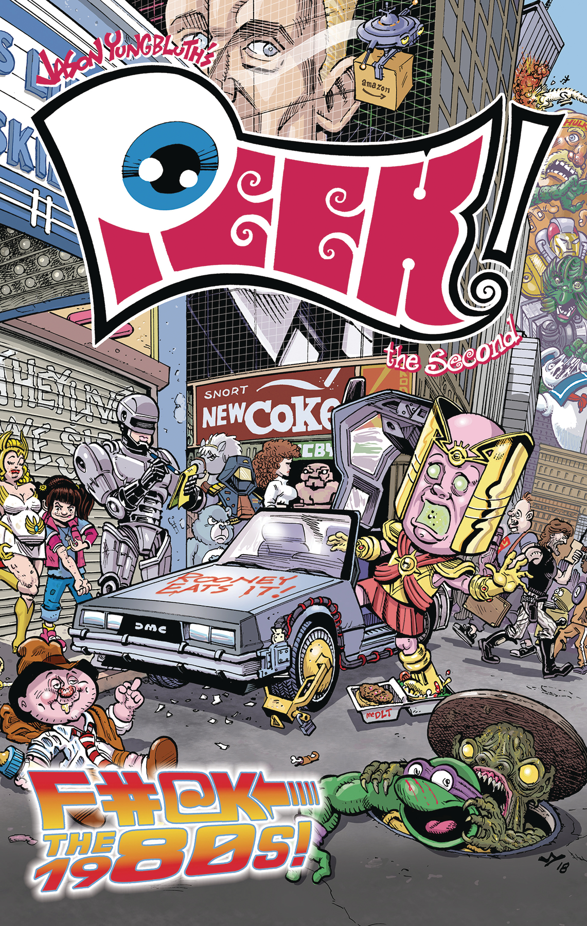 Join the all-seeing Peeker as the worst garbage of the 1980s enjoys one last day in the sun before being put out on the curb! Transforming robots and Real American Heroes that time and Robot Chicken forgot are warped by Jason Yungbluth's trademark perversity, with help form Stephen Notley (