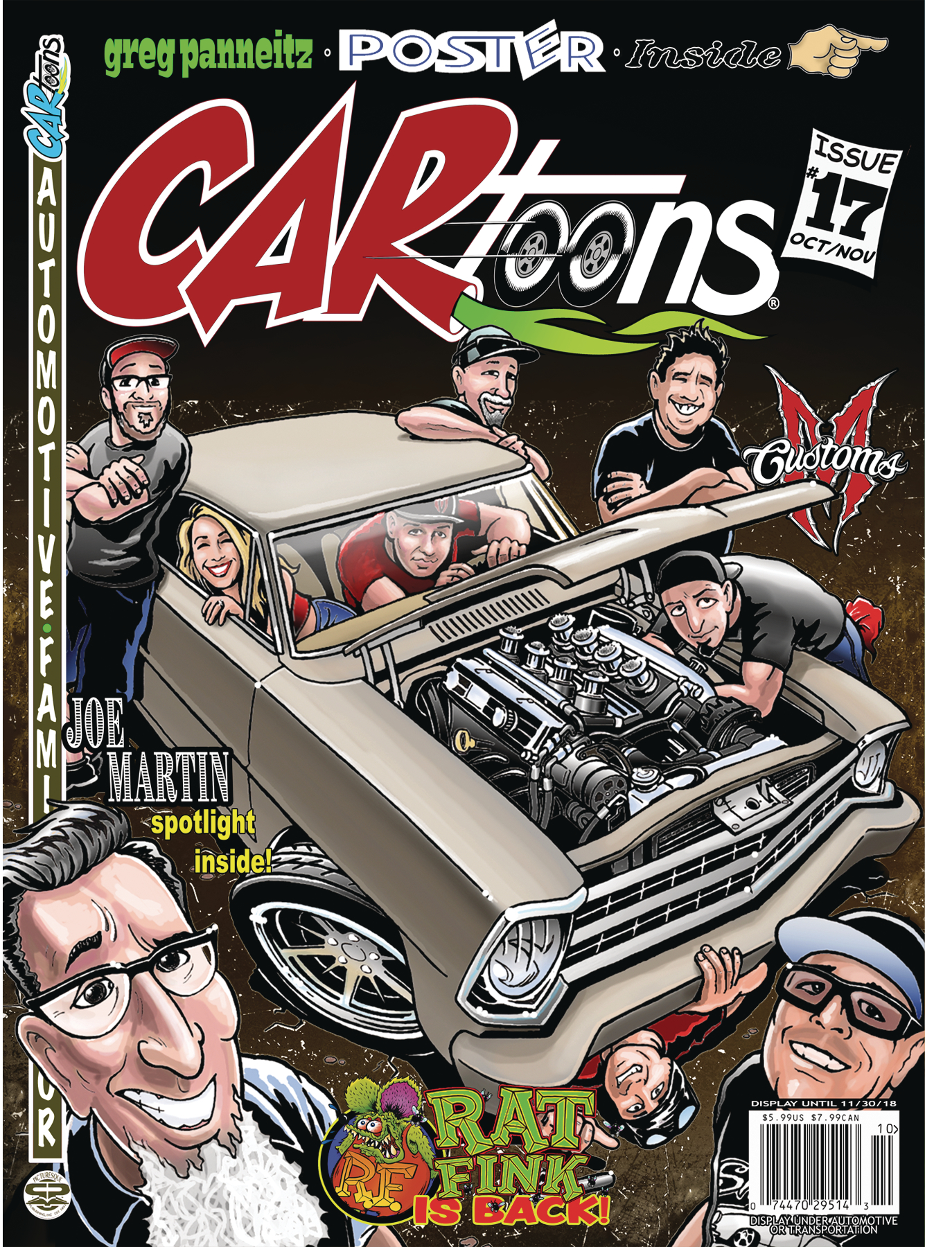 CARtoons is your #1 Hot Rod comic book magazine with related B&W stories & artwork. Issue #17 is about all types of Custom Car Cultures and more of Rat Fink's new adventures. Plus, a spotlight on TV legend, Joe Martin. 64 Pages of pure automotive family friendly humor. If you love cars and comics, you will love CARtoons!