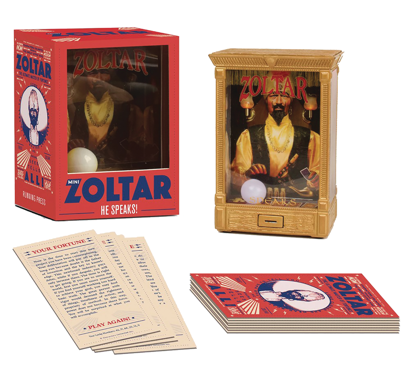 This kit includes everyone's favorite fortune-telling machine, Zoltar, with two flickering lights and a light-up crystal ball. With the touch of a button on the outside of the booth, Zoltar speaks a different fortune every time! The kit also includes 16 fortune cards.