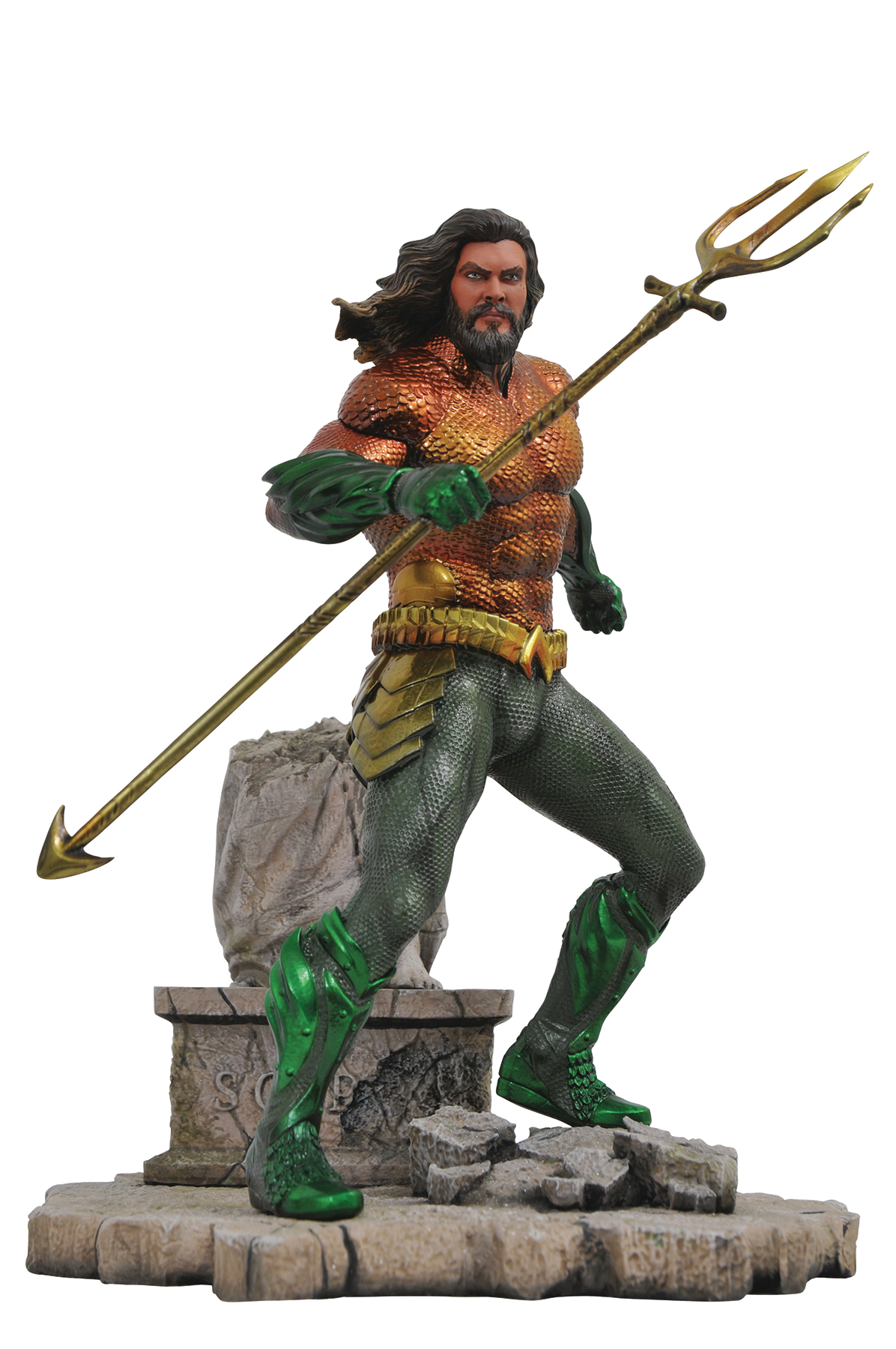 A Diamond Select Toys release! In the wake of Justice League, the highly anticipated Aquaman movie is on our sonar, and DST is offering two new PVC dioramas based on the film! Arthur Curry, the Aquaman, faces off with the Ocean Master in these two 9-inch PVC sculptures. Featuring detailed sculpting by Rocco Tartamella based on designs by Mark Wong, each features actor likeness and fine paintwork that compares with a high-end resin statue. Each diorama is in scale to all other DC Movie Gallery PVC dioramas, and comes packaged in a full-color window box.