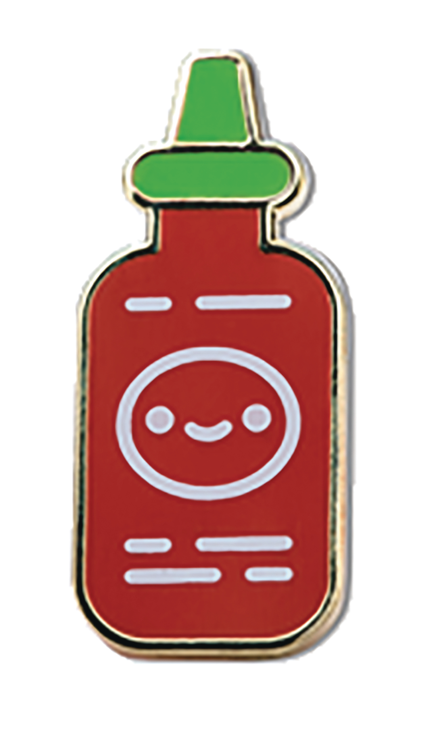 From 100% Soft. Everyone's favorite hot sauce has come home to roost in your enamel pin collection. Sriracha friend is here to add some spice to your jacket, hat, fanny pack, purse or bag. Standing 1.1" tall, this gold plated hard enamel pin comes complete with a rubber clutch backing. Add yours to your pin collection today to make it muy caliente! Each pin comes attached to a cardboard card and is individually bagged.