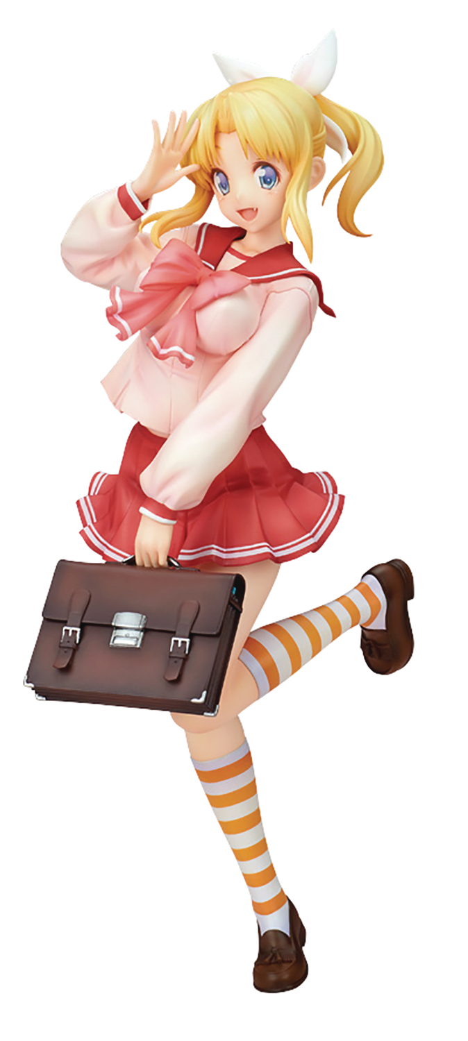 Lemmy Miyauchi! Her bright smile is sure to warm your heart, and her brilliant coloring are sure to liven up any collection. She comes wearing the classic red and pink school uniform seen in the