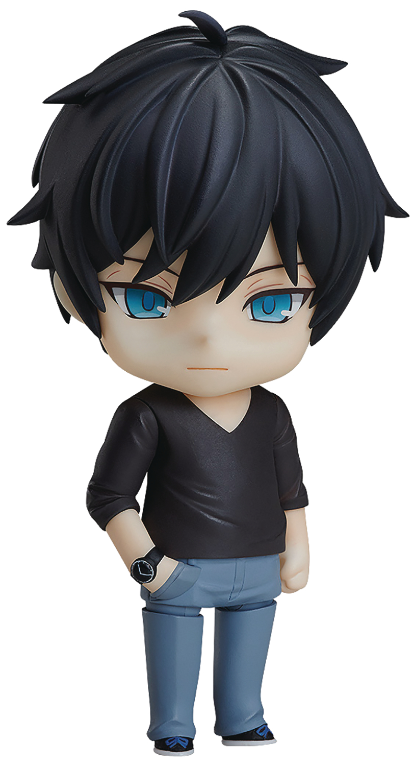 Kurose Riku! He comes with three face plates including his poker-face-like standard expression, a gentle smiling expression he occasionally shows to Shirotani-san as well as an uninterested expression that almost looks like he's totally asleep! He comes with special upper body parts to display him without a shirt as well as a smartphone optional part! He also comes with a special joinable hand part to display him holding hands with Nendoroid