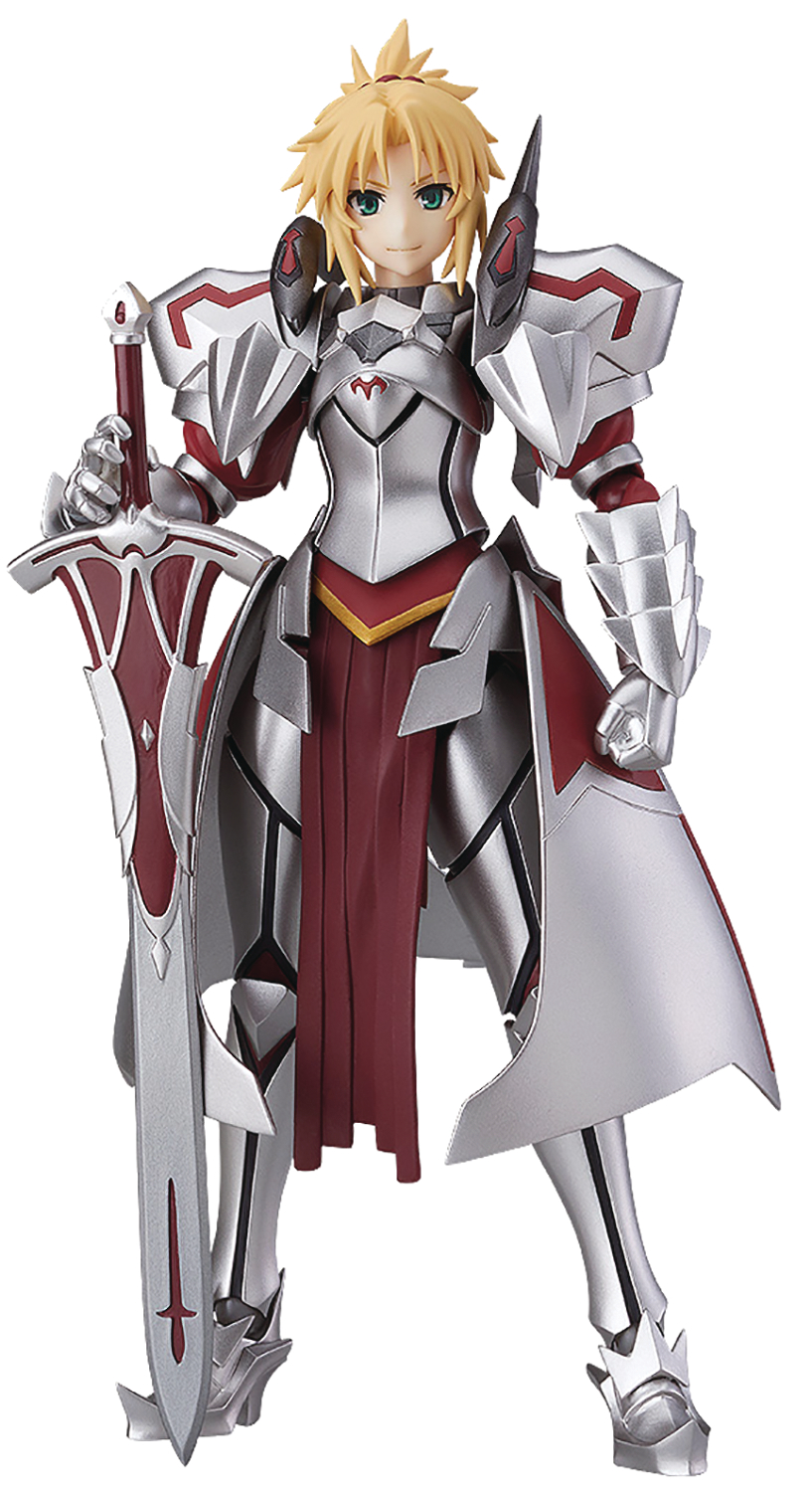 Fate/Apocrypha comes a figma of the Saber of "Red," servant of the Red Faction! The smooth yet posable figma joints allow you to pose dynamic action scenes from the game. A flexible plastic is used in specific areas, allowing proportions to be kept without compromising posability. She comes with three face plates including a determined smiling expression, a fearless combative expression as well as a closed-eyes smiling expression. She comes included with her sword, Clarent, and her Noble Phantasm, Clarent Blood Arthur. Part of the chest and sholder parts are interchangeable, allowing her to be displayed with her helmet, Secret of Pedigree. An articulated figma stand is included, which allows various poses to be taken.