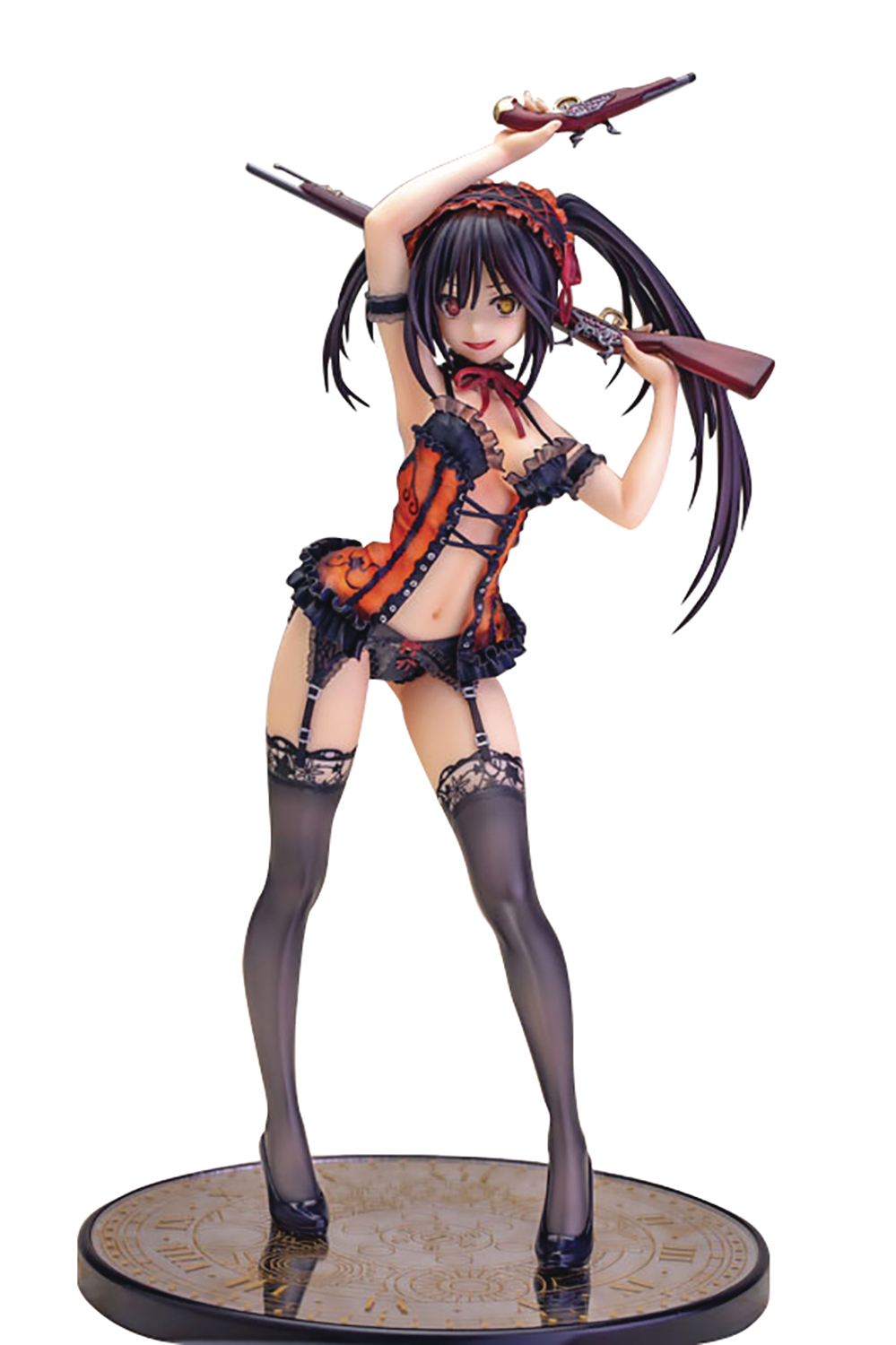 Tokisaki stands upon a circular, black base that features golden details to resemble a clock face. This figure deserves a spot on any collector's shelf. This Limited edition comes with an alternate head for a different display option!
