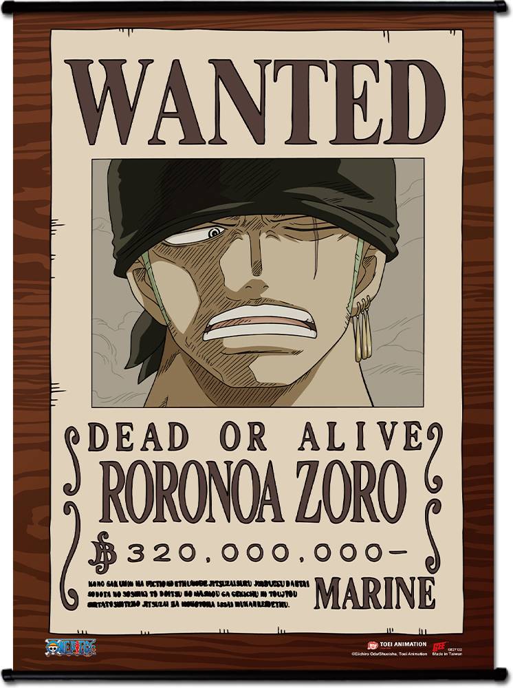 ONE PIECE WANTED POSTER ZORO WALL SCROLL