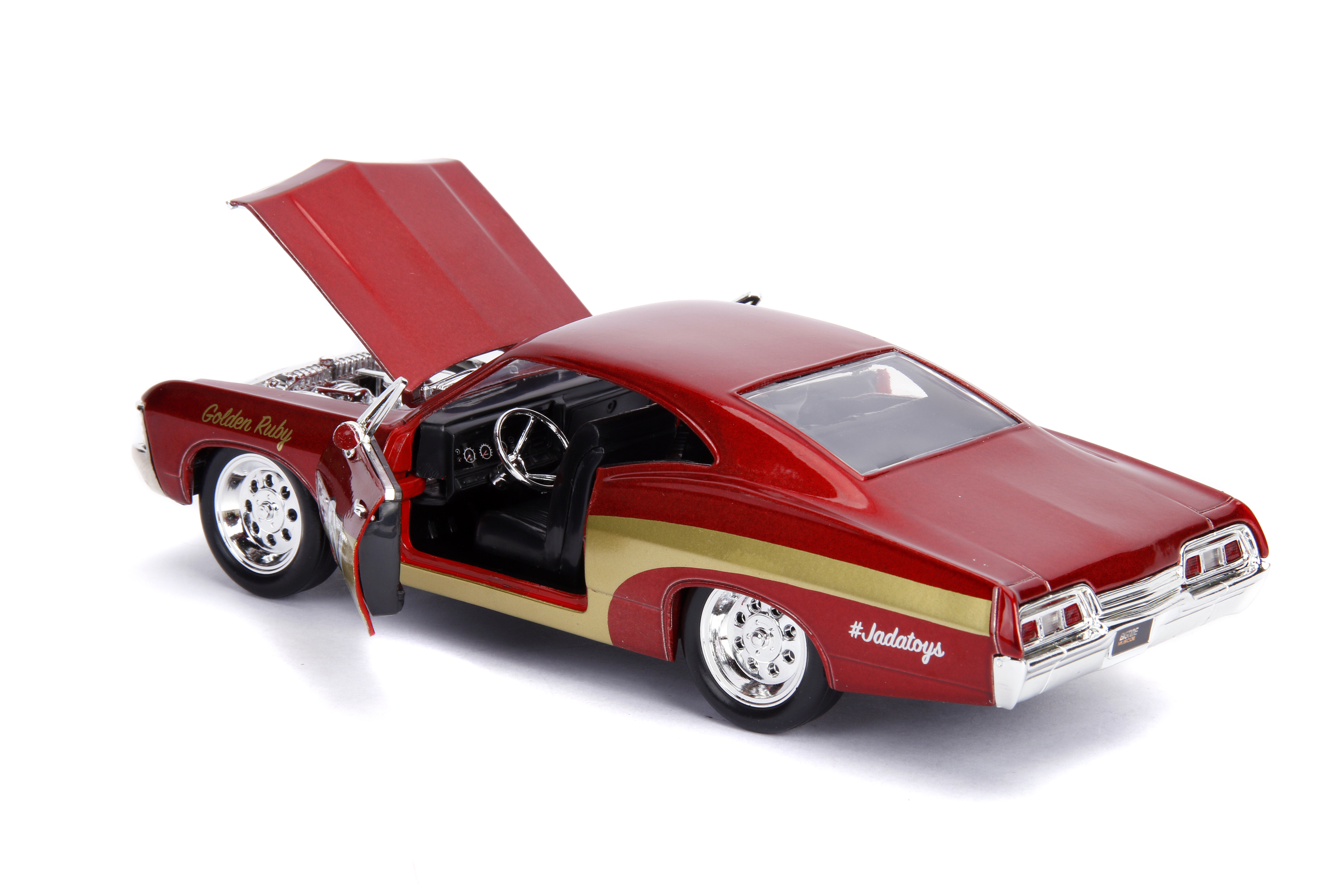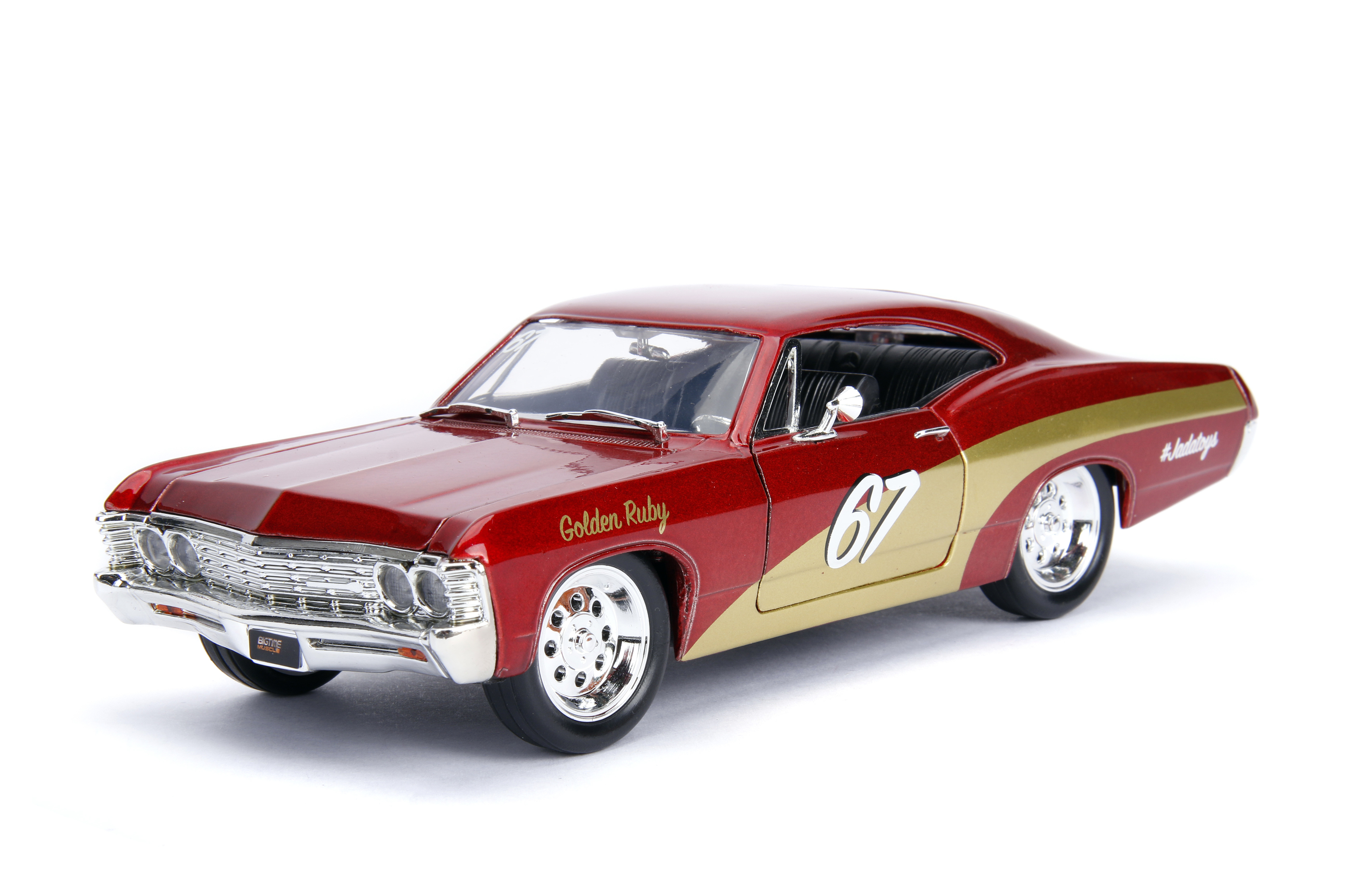 From Jada Toys. From the classic American muscle car to modern race marvels, Big Time Muscle die-cast vehicles by Jada Toys brings American car culture to a smaller scale. These vehicles feature real rubber tires, opening doors, hood, and trunk along with a detailed interior. These beautifully sculpted collectible vehicles are sure to be a standout in any die-cast collection! Collect them all!