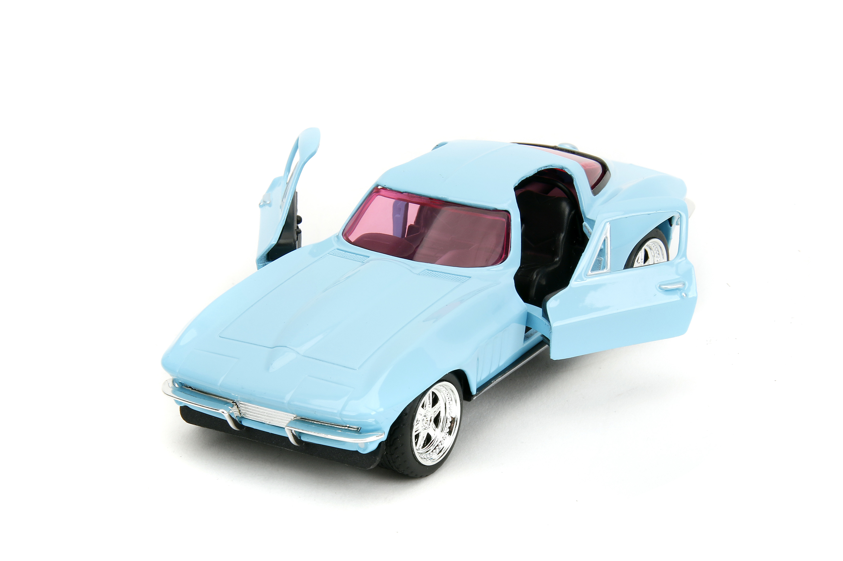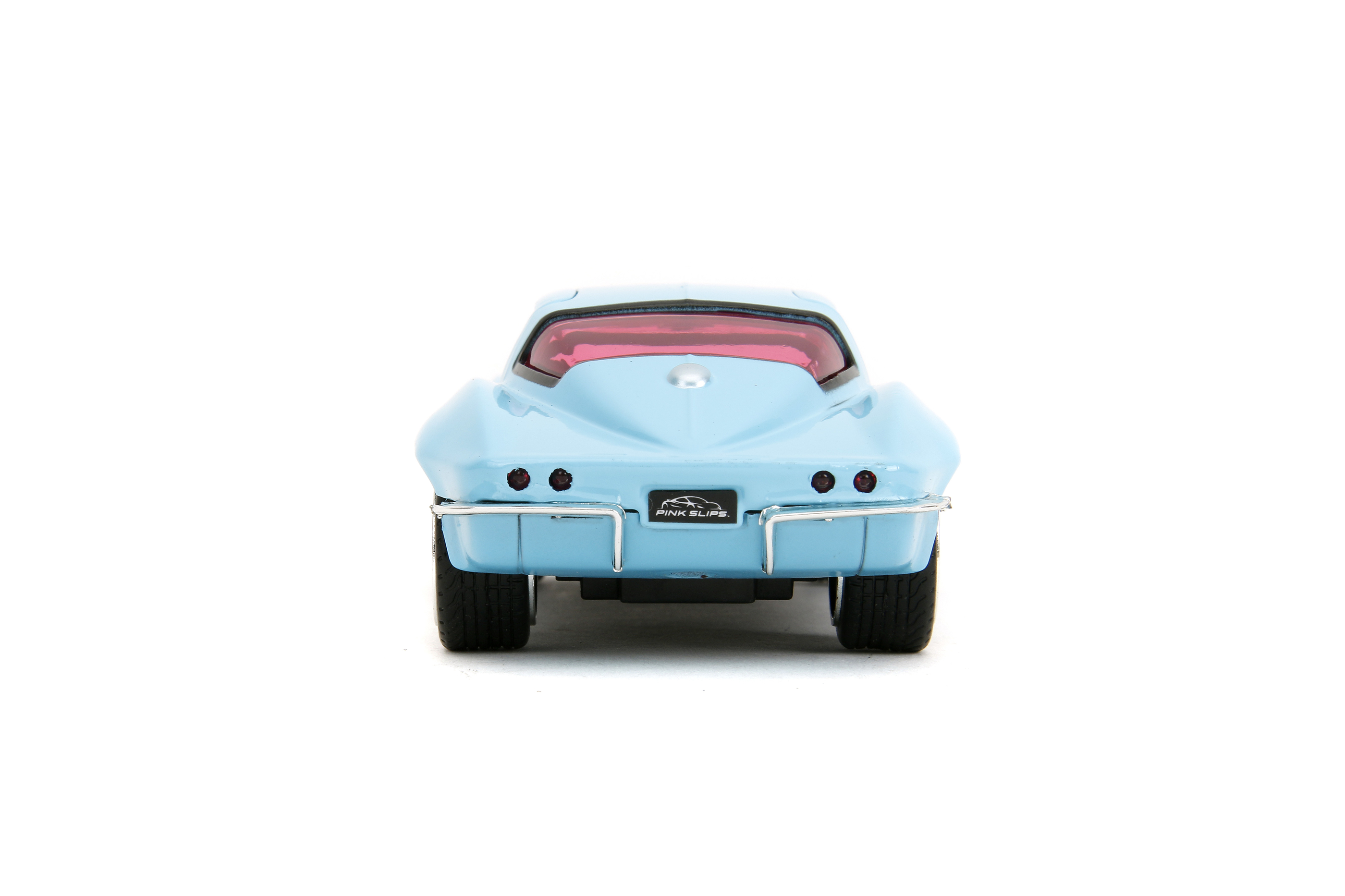 From Jada Toys. Inspired by the evolving trends in car culture, Pink Slips embraces vibrant colors, fashion-forward designs, and statement-making finishes that stand out in any collection. Made of diecast metal with some plastic parts, this officially licensed premium model features true-to-scale detail, real rubber tires, opening doors, and a finely crafted interior and exterior.