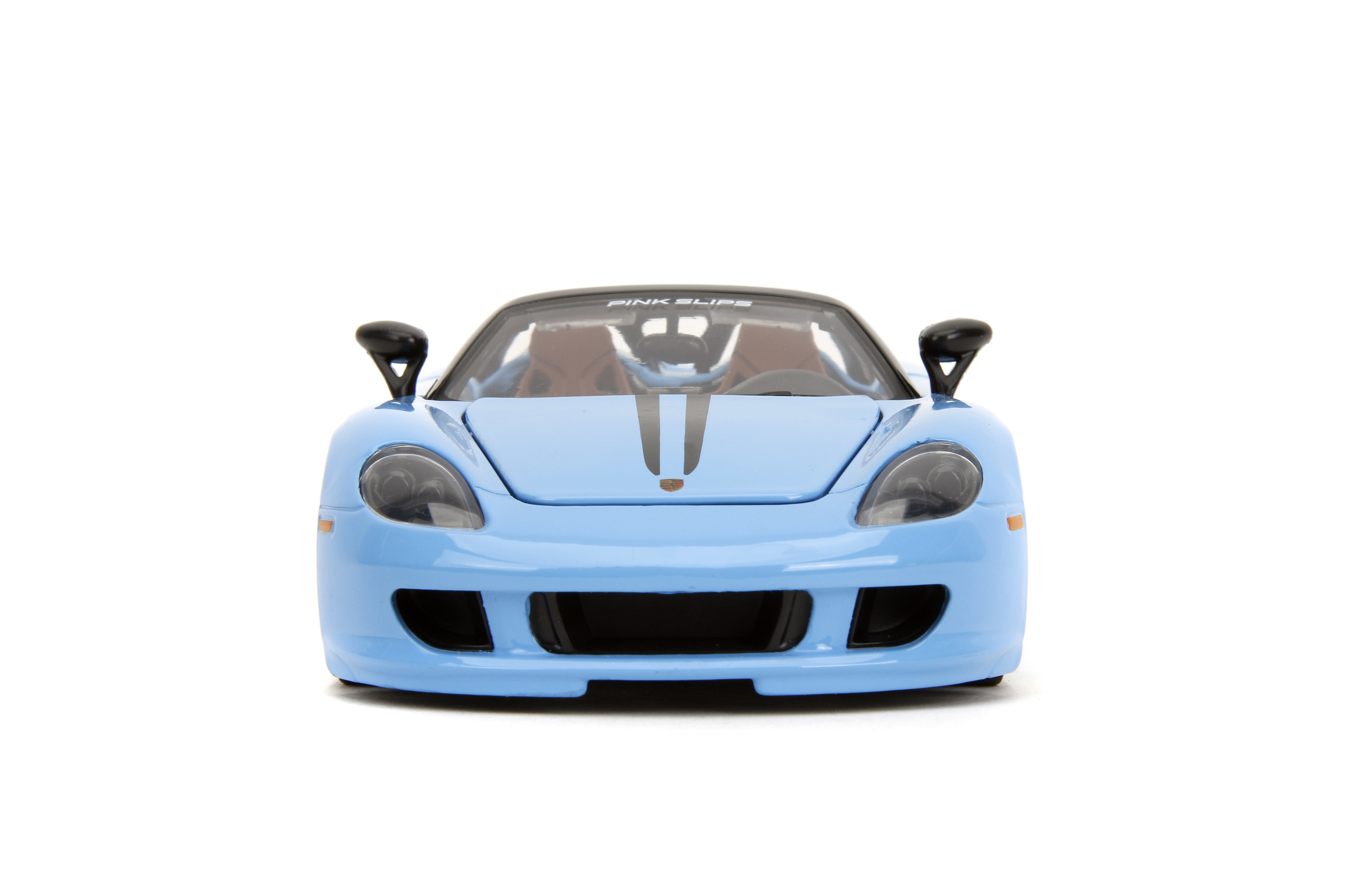From Jada Toys. Inspired by the evolving trends in car culture, Pink Slips embraces vibrant colors, fashion-forward designs, and statement-making finishes that stand out in any collection. Made of diecast metal with some plastic parts, this officially licensed premium model features true-to-scale detail, real rubber tires, opening doors, and a finely crafted interior and exterior.