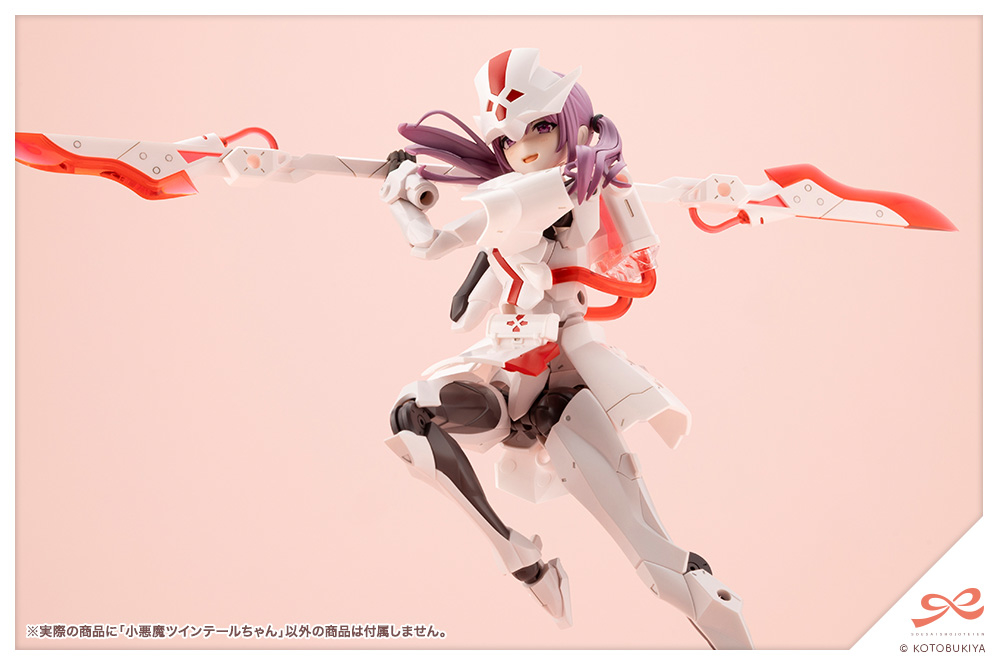 From Kotobukiya. The second entry in the SOUSAI SHOJO TEIEN spin-off series is the mischievous Little Devil Twin Tails! This highly customizable model kit features a calm pink twin-tail hairstyle with three interchangeable bangs (standard, glasses-compatible, and 3mm connector type), plus newly designed eye prints by illustrator En Morikura with three expressions: teasing, arrogant, and condescending. Both pre-painted and unpainted face parts with decals are included for even more customization. Built using the Yomi body in Skin Color C, the kit is compatible with other characters in the series and comes with a variety of accessories, including a wristwatch, choker, and three skirt types. It also features a wide range of articulation with multiple posing options, eight different hand parts for expressive gestures, and compatibility with head parts from Frame Arms Girl, ARCANADEA, and Megami Device models for even greater versatility.