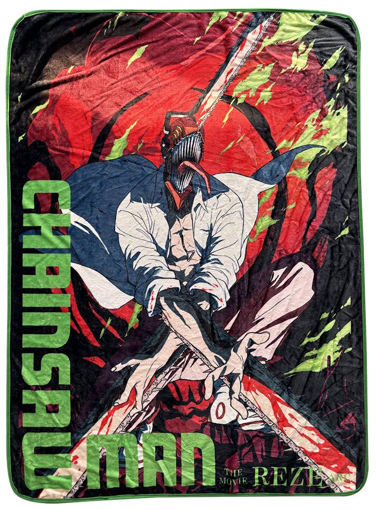 From Great Eastern Entertainment. Decorate your room with this officially licensed Chainsaw Man throw blanket manufactured by Great Eastern Entertainment! Warm, soft, comfortable, cute, and collectible, this limited edition throw features high quality graphics on 100% soft polyester fabric. Measures 46 x 60 inches.