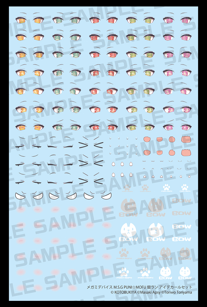 From Kotobukiya. The support series for Megami Device is expanded upon with the latest addition, MEGAMI DEVICE M.S.G PUNI MOFU GIN LANG EYE DECAL SET!