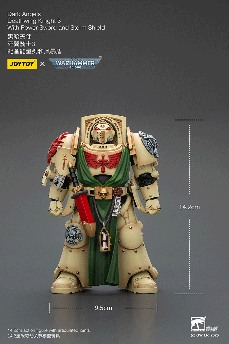 From JoyToy (Beijing) Tech Devco. JoyToy Warhammer Dark Angels Deathwing Knights - A formidable squad of 1/18 scale figures representing the most zealous warriors of the I Legion. Clad in heavily ornamented Terminator armor, these figures come armed with towering storm shields and brutal Maces of Absolution, embodying the unbreakable resolve of the Deathwing. Fully articulated and richly detailed, they are an essential addition for Dark Angels collectors and Horus Heresy enthusiasts alike.
