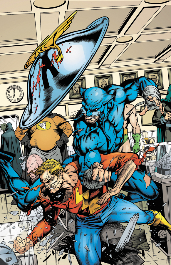 The spotlight shines on Wildcat and Flash! These two members of the JSA star in a new story shipping twice in February by writer Peter Tomasi (OUTSIDERS, THE LIGHT BRIGADE) with art by the JSA team of Don Kramer & Keith Champagne! A mysterious figure has gained control of the Spear of Destiny, one of the most dangerous artifacts on earth, and is using it to pit the two heroes against each other!