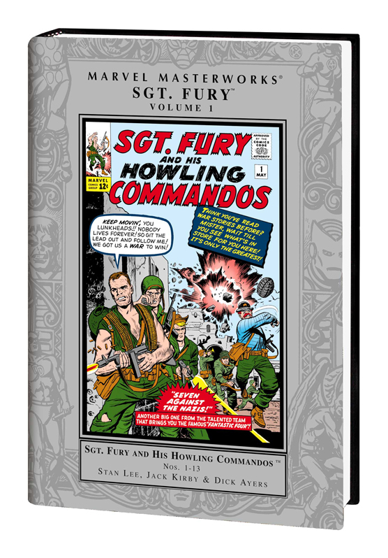 WHA-HOOO! It's time for Marvel's first-ever war Masterworks with tales of Sgt. Nick Fury and his Howlin' Commandos in thick of ol' WWII! And for the icing on the cake, it's a titanic team-up of the mighty talents of Sgt. Stan Lee and Infantryman Jack Kirby! That's a pair storytellers so explosive you better make sure you keep your lid on when you read this one, soldier! Prepare yourself for drama, intrigue, humor and action galore as Fury, Dum Dum Dugan and the rest of the Howlers as they battle more Nazis than you can shake a bayonet at, team-up with Captain America and Bucky, battle the nefarious Baron Strucker and Zemo, and set out to capture Adolf Hitler himself! With a pedigree like that, get off your duff and reserve your copy today, goldbrick! That's an order! Collecting SGT. FURY #1-13