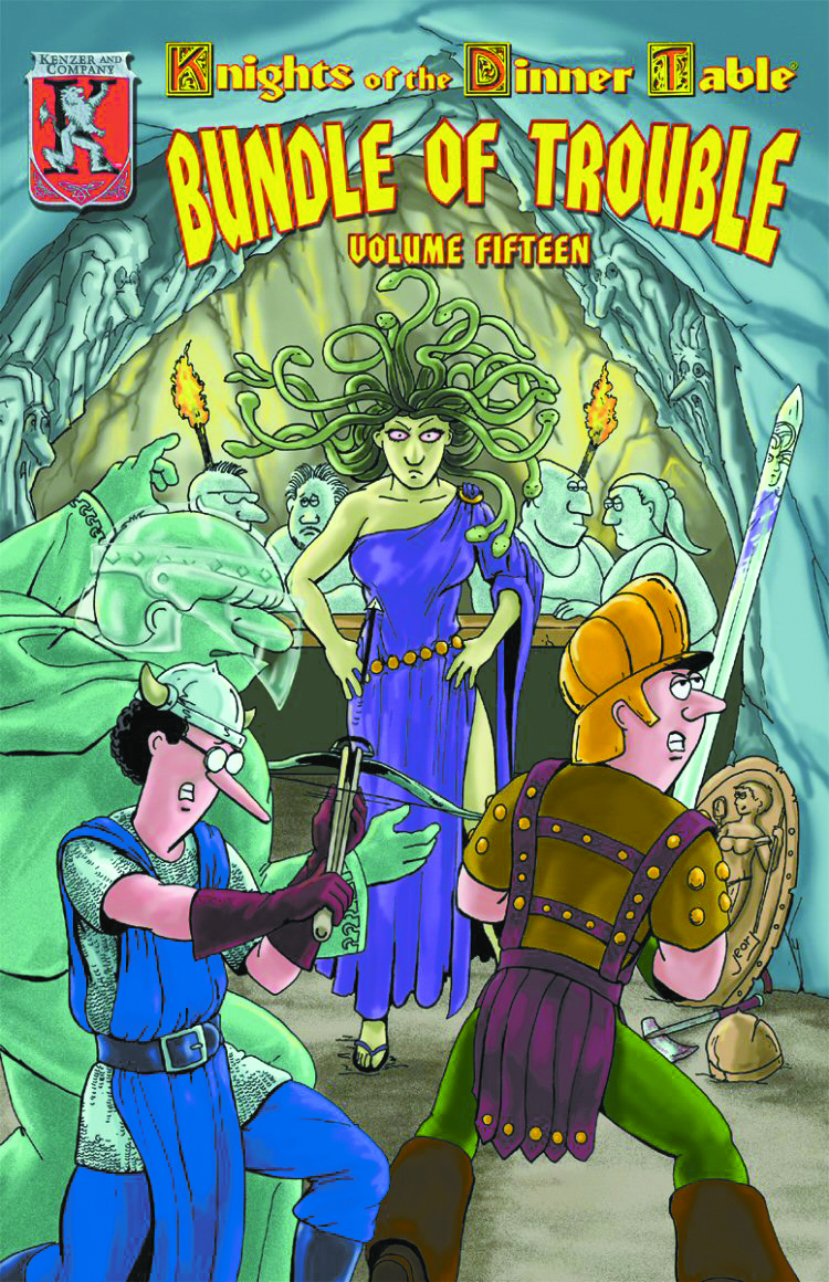 Knights of the Dinner Table #46-49, crammed between two sturdy covers! It's always a great time to pick up these hysterically funny strips, so don't miss out on this incredible addition to any gamer's bookshelf!