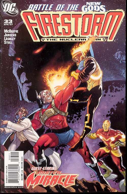 The superstar creative team of Dwayne McDuffie (JUSTICE LEAGUE UNLIMITED, STATIC), Dan Jurgens (Superman, Captain America) and Ken Lashley (The Flash) bring Firestorm to bold new heights! Jason Rusch and Prof. Martin Stein just want to get their lives back to normal, but the New Gods have other plans! When Orion comes looking for Prof. Stein, you can bet a throwdown's not far behind! Guest-starring the Seven Soldiers' Mister Miracle!