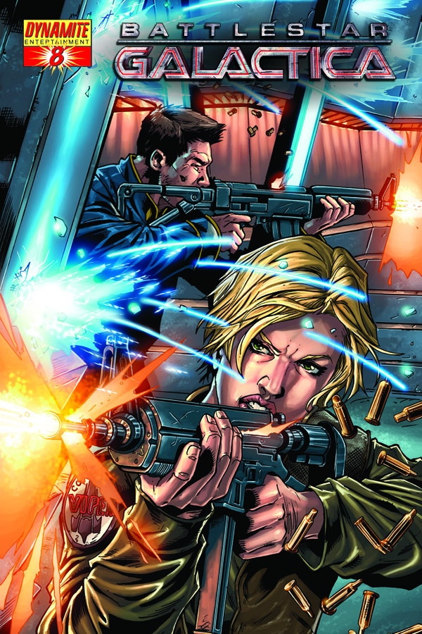 Battlestar Galactica! Read the stories that compliment the Peabody Award-winning TV series! This issue features the conclusion to the second thrilling story arc! Battle rages between the various factions, threatening to tear the fleet apart! It's Cylon versus Cylon! Human versus Human! And in the middle of it all, Sharon makes a fateful decision... Featuring the continuing creative team of writer Greg Pak and artist Nigel Raynor, along with another stunning series of covers by Raynor, Stjepan Sejic, and Jonathan Lau, plus another spectacular photo cover!