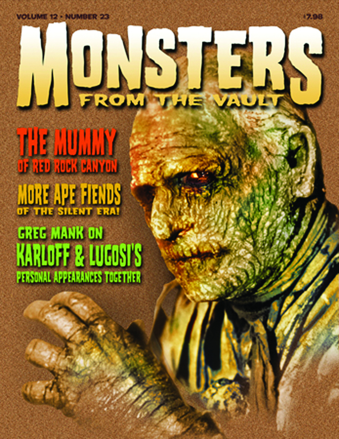 Monsters From The Vault covers the classic (and not so classic) horror and science fiction films of the 1920s through 1970s. The magazine features articles, DVD reviews, and book reviews. Each issue includes tons of rare photographs beautifully reproduced; many published for the very first time. Many of the genre's best writers contribute to the magazine; that's why