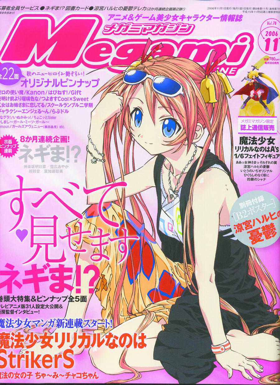 Megami is the best Japanese anime magazine for tons of free giveaways, as well as full-color artwork and posters! Includes telephone cards, punch-out "character stands", stickers, and much more! Japanese text.