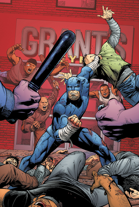 "Forward Through the Past," Part 1 of 3. Wildcat returns to his old Gotham stomping grounds to investigate strange happenings in a gym he once owned. But after so many years relying on the JSA, can he rediscover the solo street fighter within? And how long can he prowl the streets of Gotham without attracting the attention of other Gotham heroes?