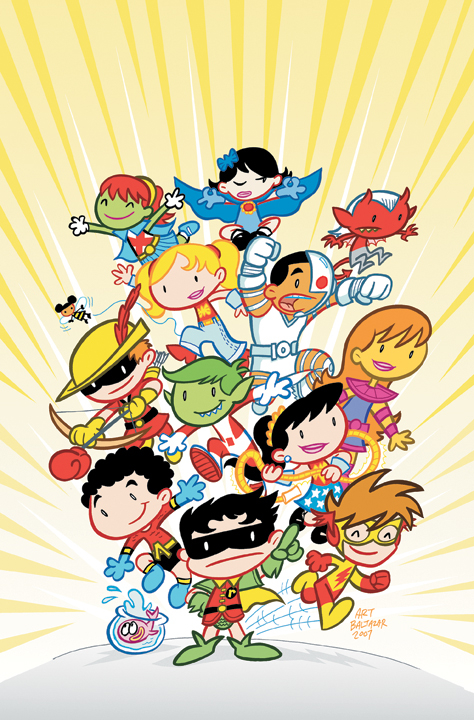 Awwww yeah, Titans! Join us for the exciting first issue of Tiny Titans written and drawn by the amazing Art Baltazar and Franco! See what life is like at Sidekick Elementary and meet the new staff! Follow the madness that ensues when Beast Boy gets a puppy friend! Witness what happens when the girls meet a pink stranger with a melted ice cream cone! Find out what makes Cassie such a trendsetter!