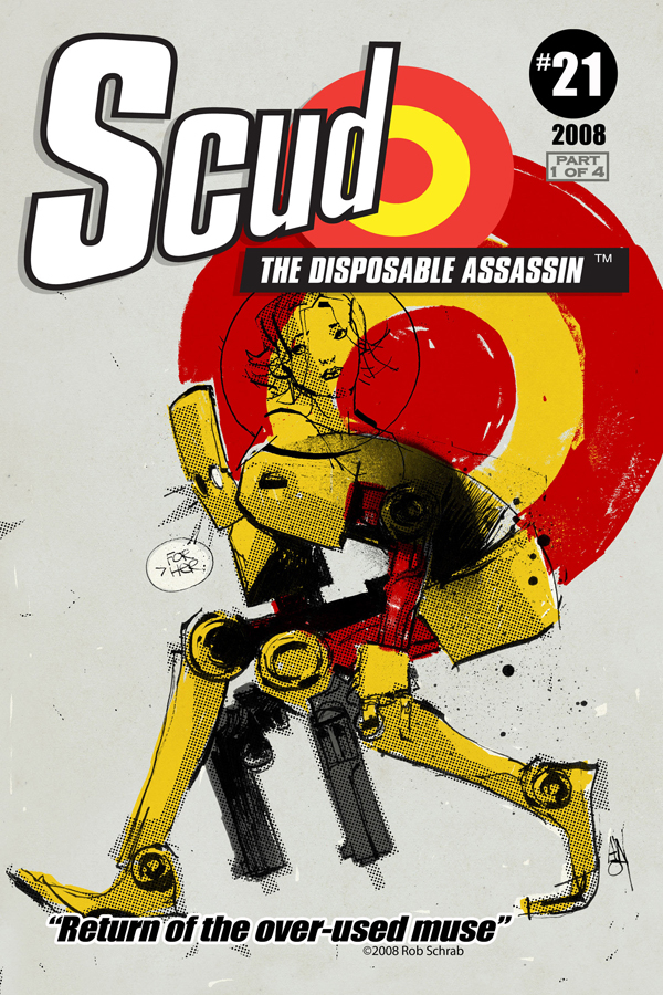 After ten years, Scud the Disposable Assassin RETURNS! The series ended on a cliffhanger with our robot hit man agreeing to destroy the world. Creator ROB SCHRAB (MONSTER HOUSE, THE SARAH SILVERMAN PROGRAM) vows to conclude this indie gem in a four-part mini-series. Everyone comes back, but does everyone survive?