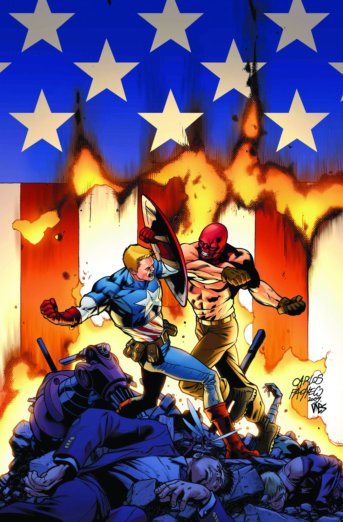 Like father like long-lost psychotic son? Not quite! Looks like this anticipated Father-Son reunion will result in bullets instead of tears! Will the Avengers get there in time to keep Captain America and Red Skull from blowing themselves away and the world in the process? Hold on to your masks! The wildly entertaining team-up of MARK MILLAR (ULTIMATES) and CARLOS PACHECO (AVENGERS FOREVER) bring you the exhilarating conclusion of ULTIMATE COMICS AVENGERS: THE NEXT GENERATION!