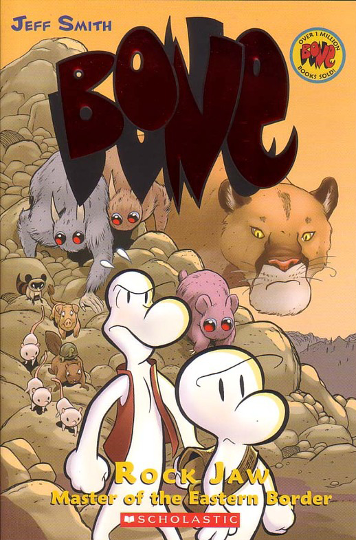 Fone and Smiley Bone strike out into the wilderness to return a lost rat creature cub to the mountains. It doesn't take long before they run smack into Rock Jaw, "Master of the Eastern Border," an enormous mountain lion with a none-too-friendly disposition. Life gets even more complicated when they befriend a group of baby animals who are being orphaned by rat creature attacks. Everything comes to a head in an earth-shattering clash between Rock Jaw and Kingdok, the leader of the rat creatures.