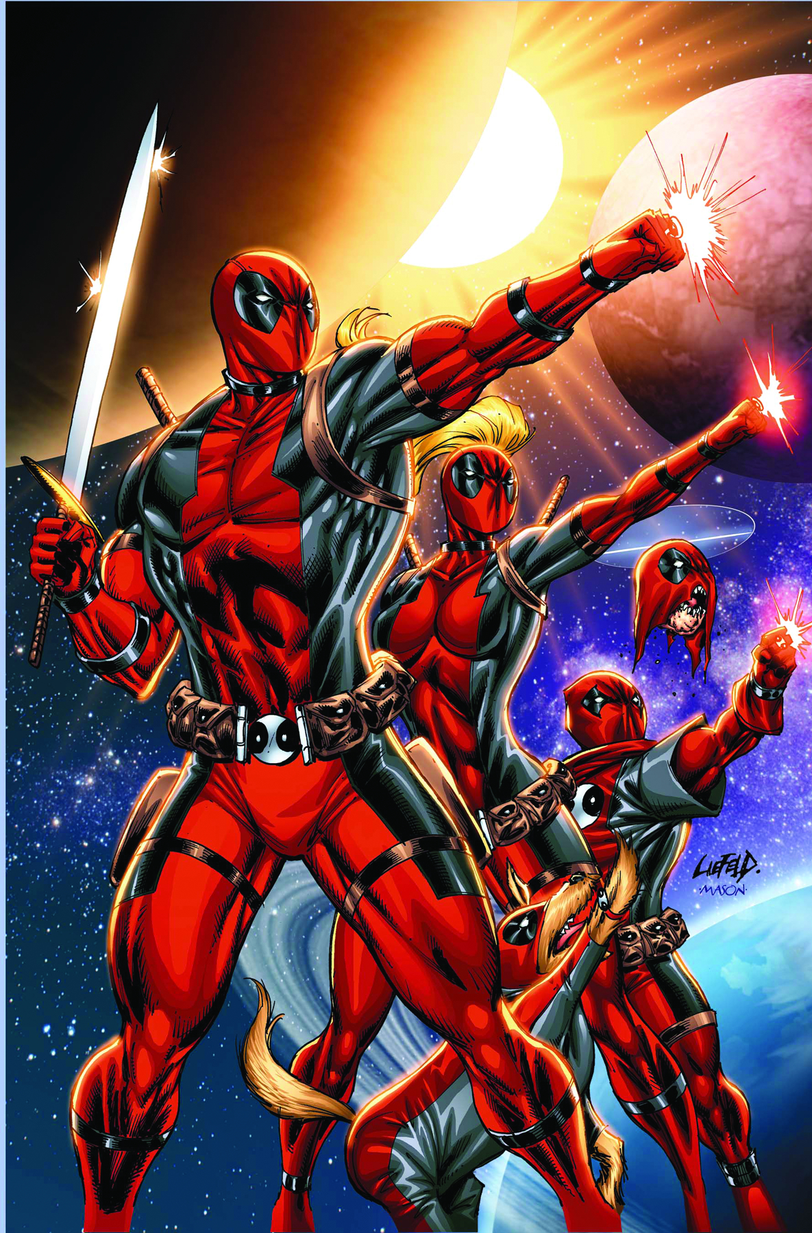 "YOU SAY YOU WANT A REVOLUTION," PART 5-The Krook Home world has been through the ringer, and with the help of Lady Deadppool, the King has seized power back from his upstart daughter Princess Teela. But there's time for one more showdown as Teela squares off against Lady Deadpool. Which of these sexy sword wielders will prove to be the better blade??Meanwhile, Deadpool and Headpool are in the midst of the Galaxy's biggest bank heist. Too bad the the Omega Confederation has sent a couple of heavies to thwart his plans. Turns out, Deadpool can call on a couple of his own heavies. Who are these heavies??Will Dogpool bite one of them on the ankle? Tune in to see the explosions