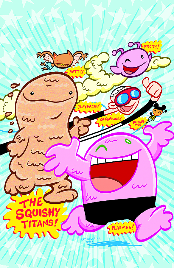 It's time to meet...the Squishy Titans! The pink blob Plasmus! The futuristic pet Proty! The stretchy Offspring! The diabolically dirty Clayface! Who's the squishiest? Who's the stretchiest? Join us as the Squishy Titans welcome a mysterious new member from the Orange Lantern Corps!