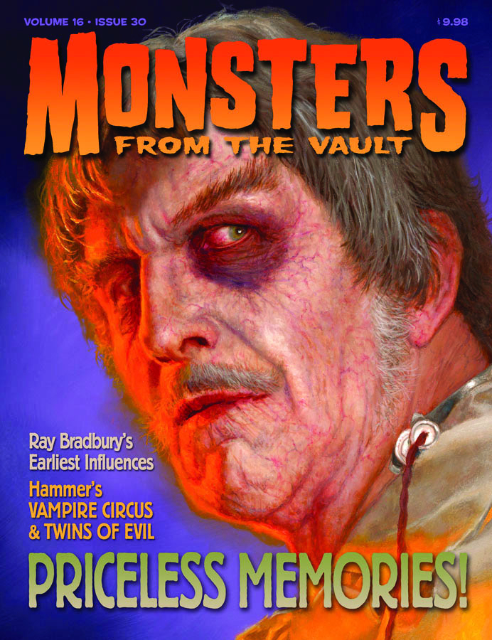 Monsters from the Vault celebrates the 100th anniversary of Vincent Price's birth in style! Daniel Horne's eerie painting of Vincent Price as Dr. Anton Phibes is featured on the cover. The issue opens with some of our regular contributors celebrating the "Vincentennial" with their thoughts on the actor and some of his roles. In addition, editorial comments, letters to the editor, DVD/book reviews, and a few surprises await you in this issue. Each article contains tons of rare photos, all beautifully reproduced. Don't miss out on this exciting issue of "The Best in Classic Horror,"